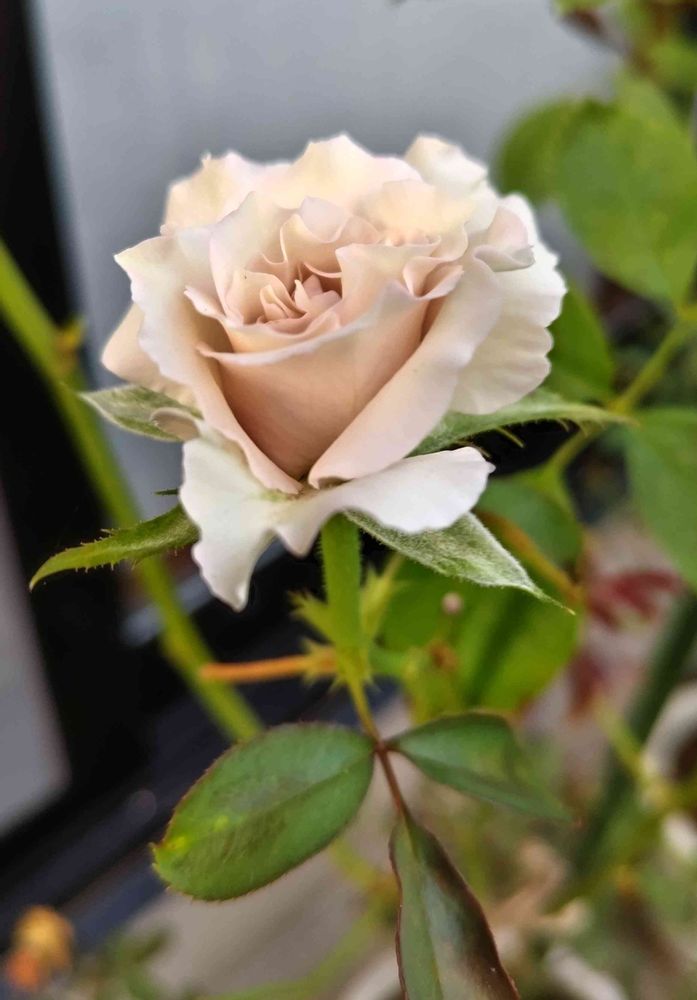 🌹夏色はラテカラー、季節毎に花色が変わる娘です。品種不明、秋はシルバーの中にブルーが入る少しガブリエルに似てるかな?香りはブルーローズ系なんだけどね。