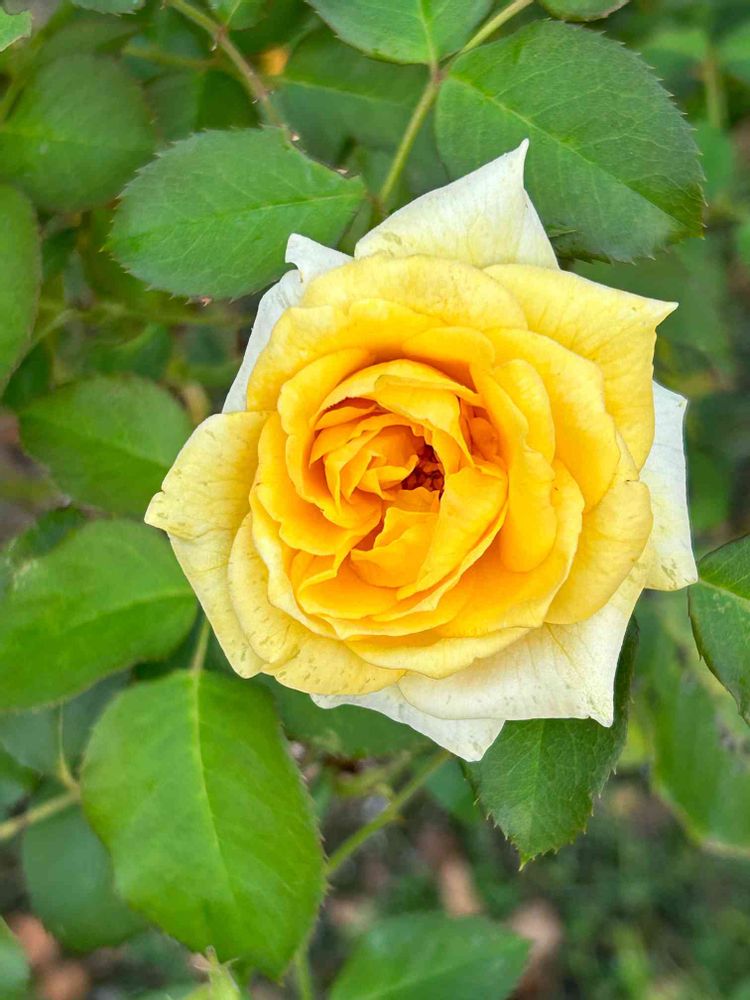 小さな庭に黄色のバラ開花