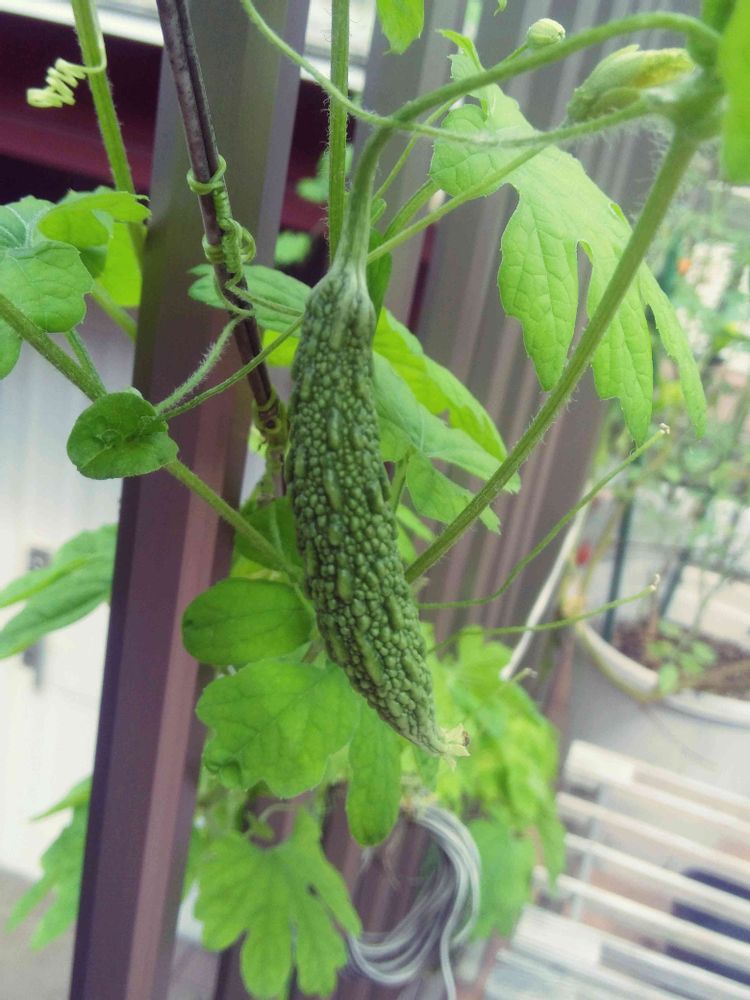 8月初めにひとつだけ実をつけて、このまま枯れるのかと思っていたら9月に入る頃にひとつ、そしてまた赤ちゃんゴーヤが♪