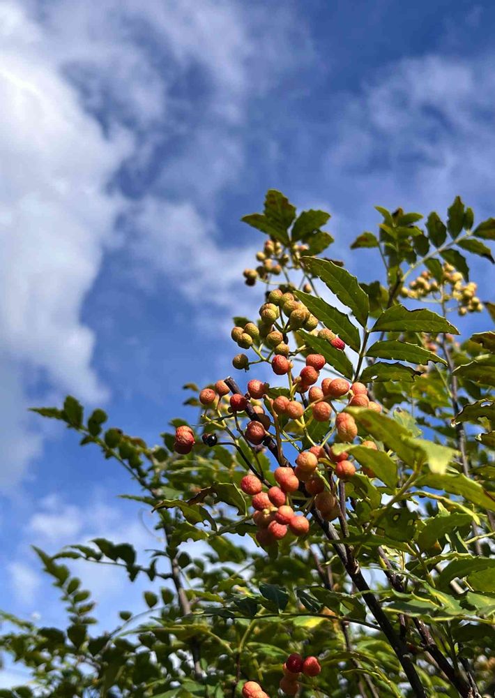 お庭に赤く熟した実山椒🔴🔴🔴、たわわに成って