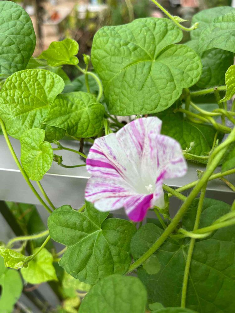 6〜7月頃から咲いていたアサガオは溢れ種の🌱が出始めているのに、やっと花が咲き始めたアサガオもあって面白いですね🤗
