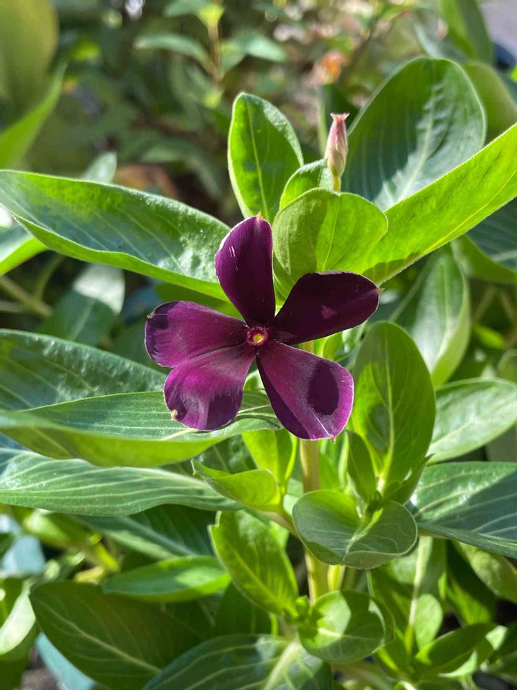 夏真っ盛りの8月入った頃、廃棄するつもりのプラ鉢に何だろう?と思うこぼれ種を見つけて何となく水やりしてたら去年あんまり咲かなかったビンカ ブラックスワンでした🫢❗️