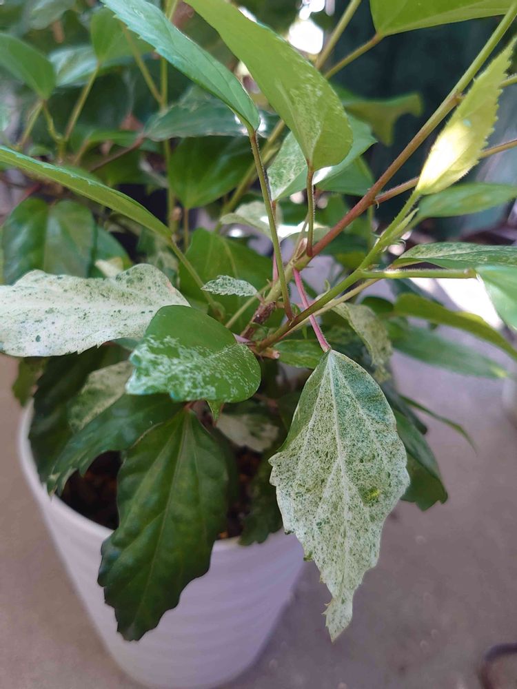 斑入り葉のハイビスカスさん、お花無くてもリーフが綺麗だから全然許せますね😆
