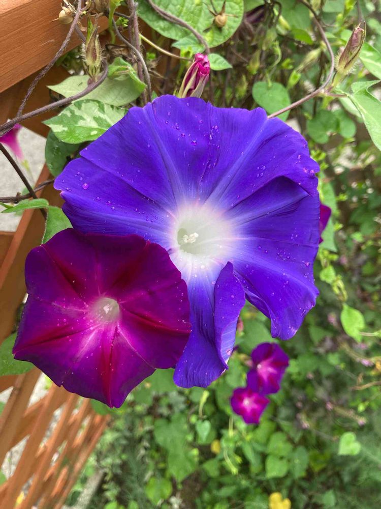 うちもアサガオがあちこちで咲き始めたよ。肌寒いくらいが若しかしたら好きなのかも知れないね😊💙💜🤍