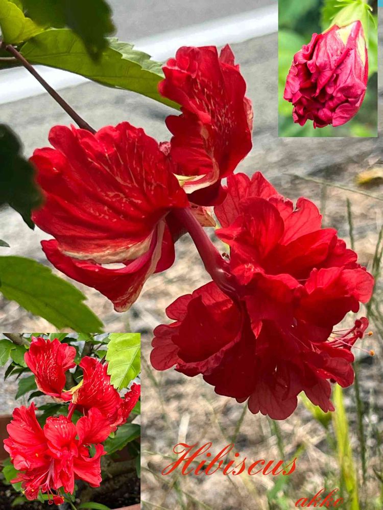 真っ赤な2段構えのハイビスカスさん♥️💕