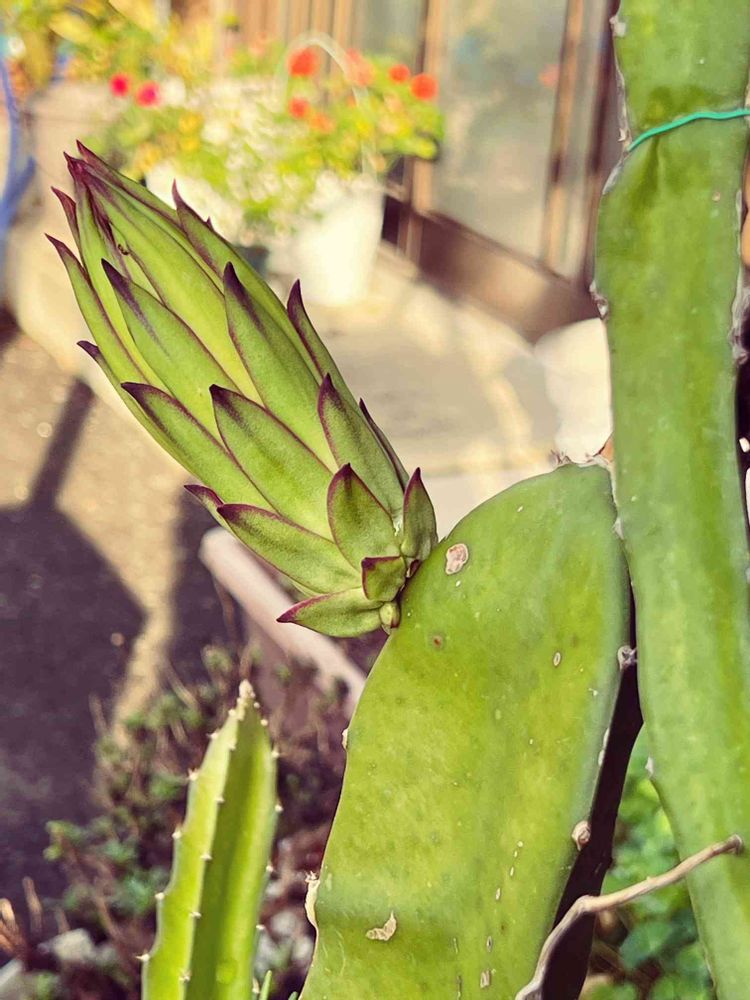 リラさんの広い庭,ドラゴンフルーツのつぼみ,鉢で育てるドラゴンフルーツの投稿画像