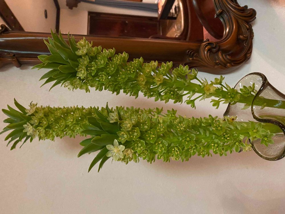 初めて見たお花ですが、パイナップルリリーでしょうか。