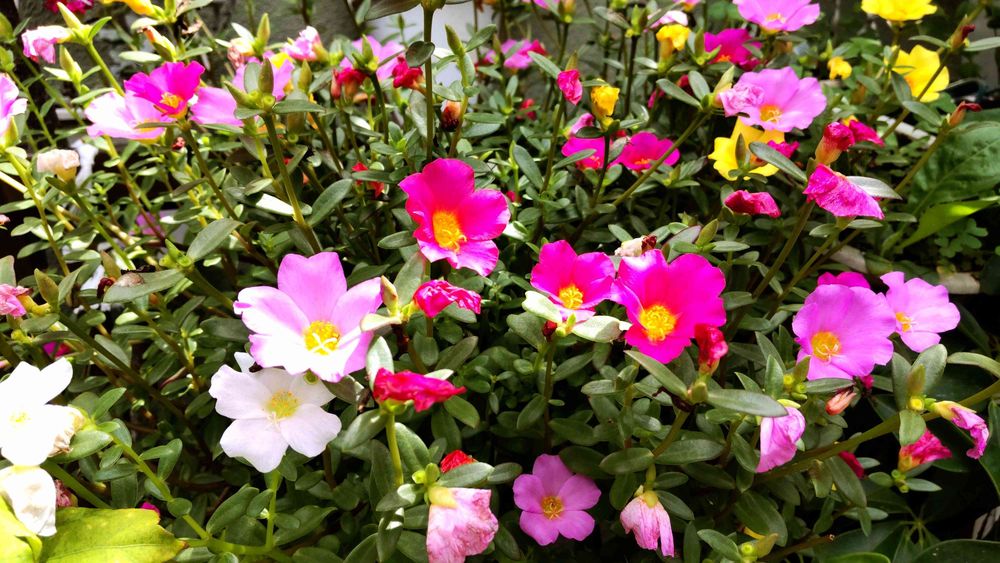 🌼今日の花 マツバボタンかと思ったら...ポーチュラカでした(^^;)近所の公園で暑さの中も元気に咲いてます💖