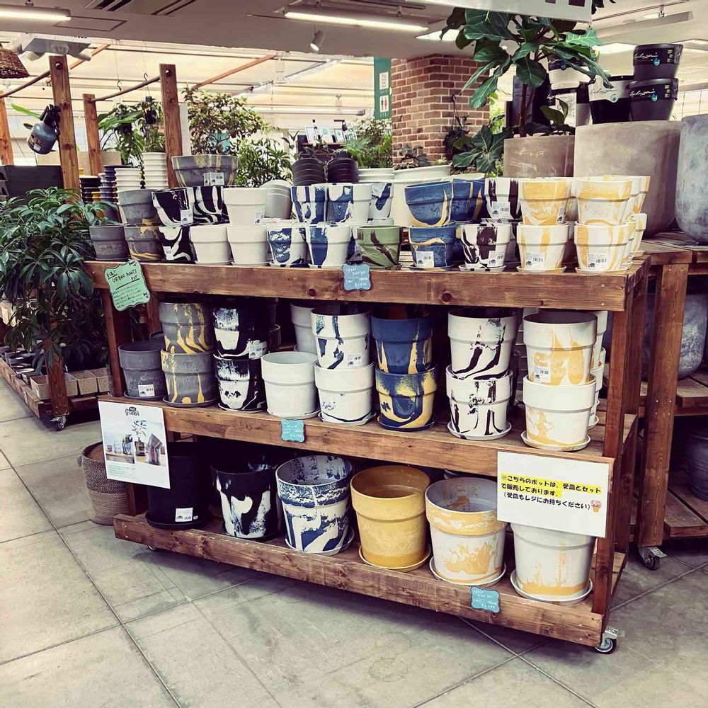 そしたらさ、数日前雑貨屋で見かけて気になってた一つ一つ柄が違うマーブル模様プラ鉢が夢の様にいっぱい揃ってて静かに大興奮🤩