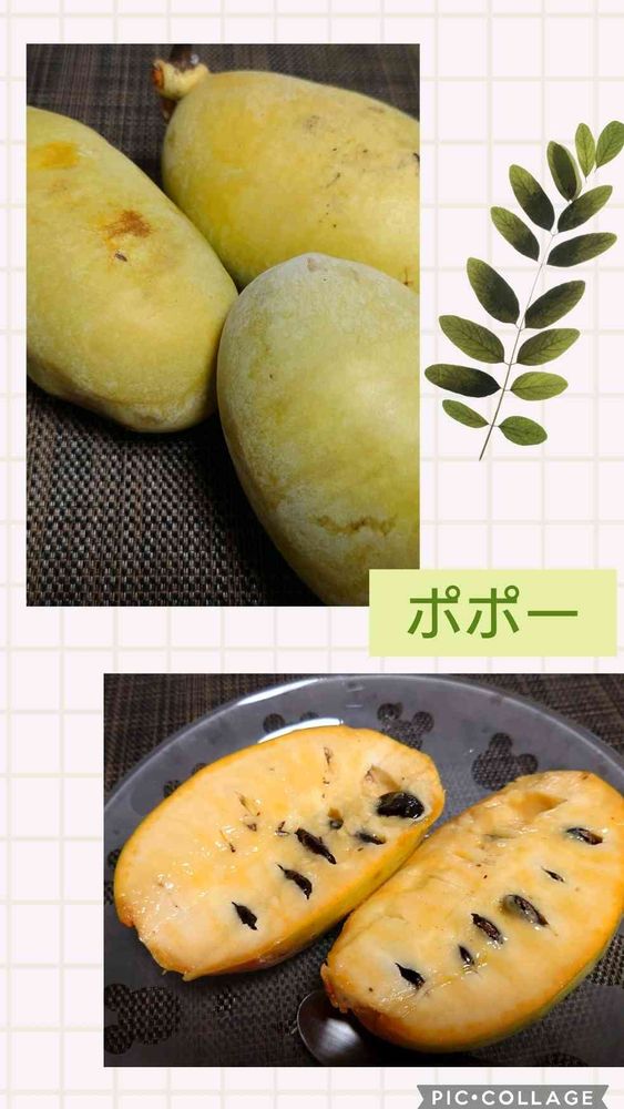 ポポーの実は近くの農家さんでたまに販売しているので毎年楽しみにしています♪