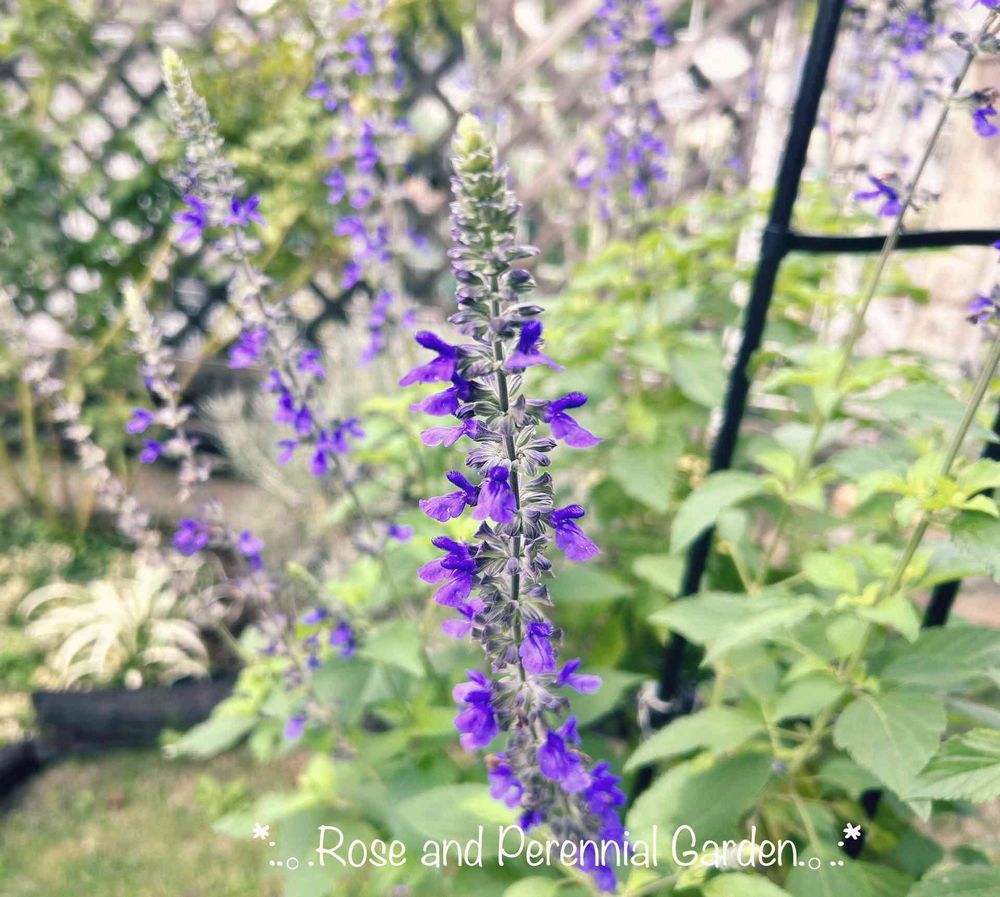 うちの宿根サルビアも、垣根の下に植えてるから、はみ出してきた💦。