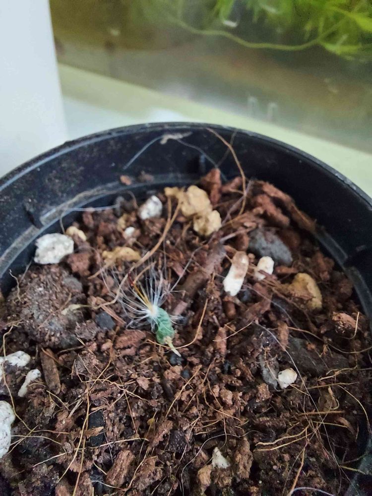 1ヶ月半経ってやっと発根しました。水やらないで土の上に放置してたからシワシワ😅