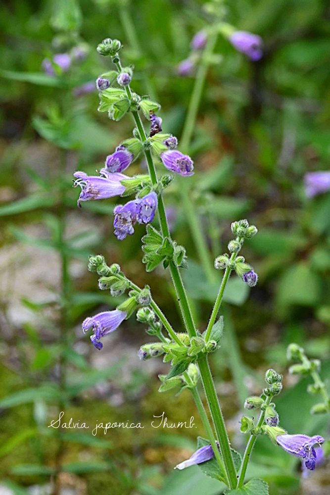 学名がSalvia japonicaであるようにサルビアやセージの仲間になります。 細く長く伸びた茎に、サルビア特有の唇形の花を穂状に咲かせます。