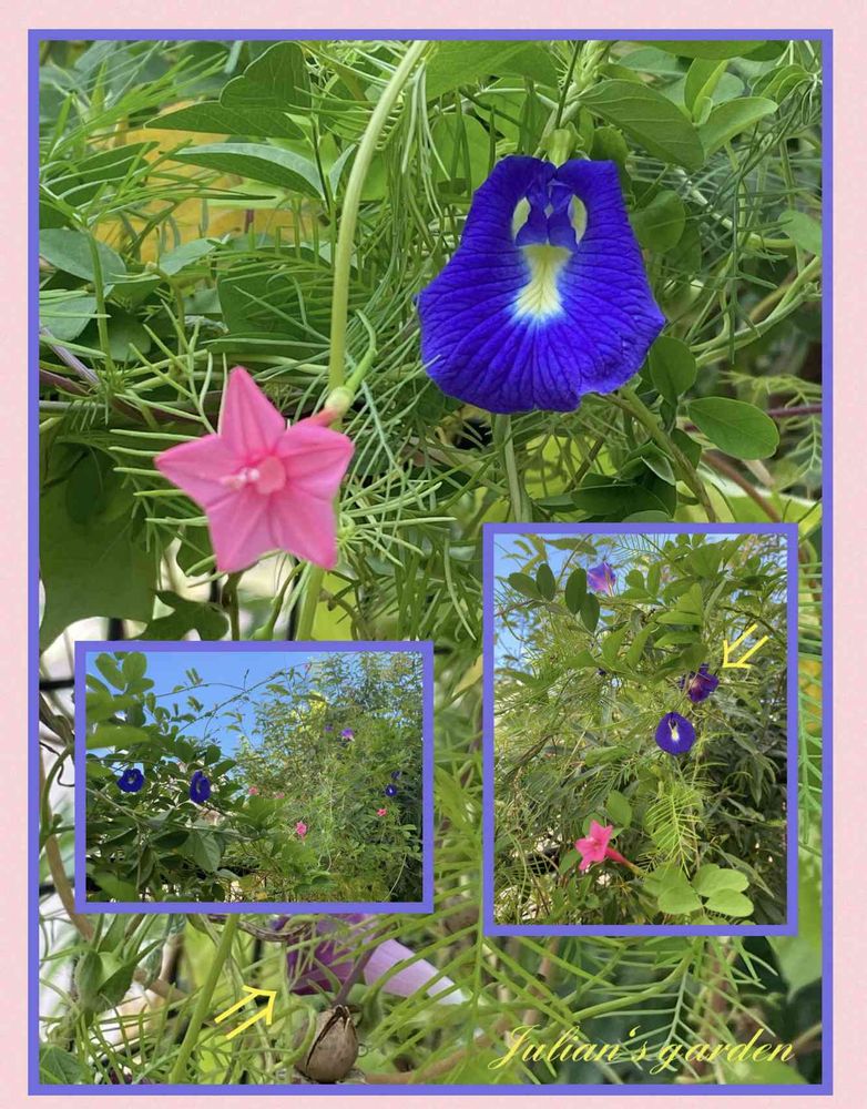 2日前に自家採取の種からのバタフライピーとルコウソウが揃って咲いているところが撮れました🤳💓