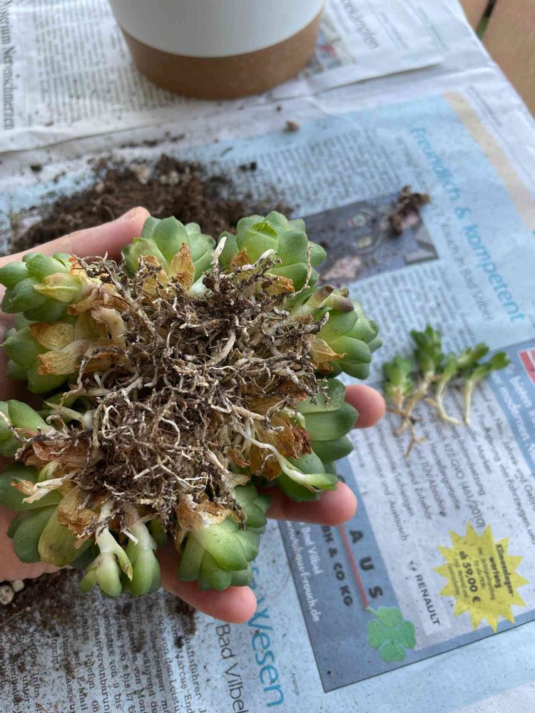 土の入れ替えもしたかったので、根を指で優しくモミモミなどしていたら、自然に四つの株がサヨナラ👋しました。離別組として別の鉢で育てます。