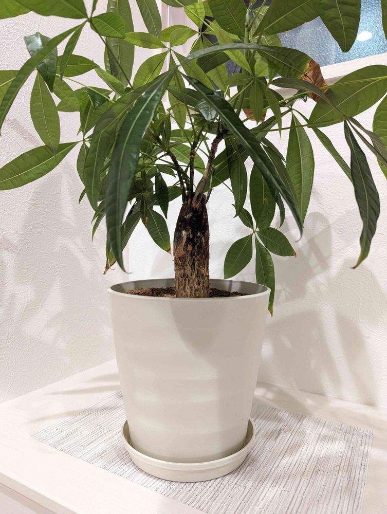 パキラです。玄関に置いてますが置き場所が合っているのか家の中でこの子だけ特に葉がもりもりです。