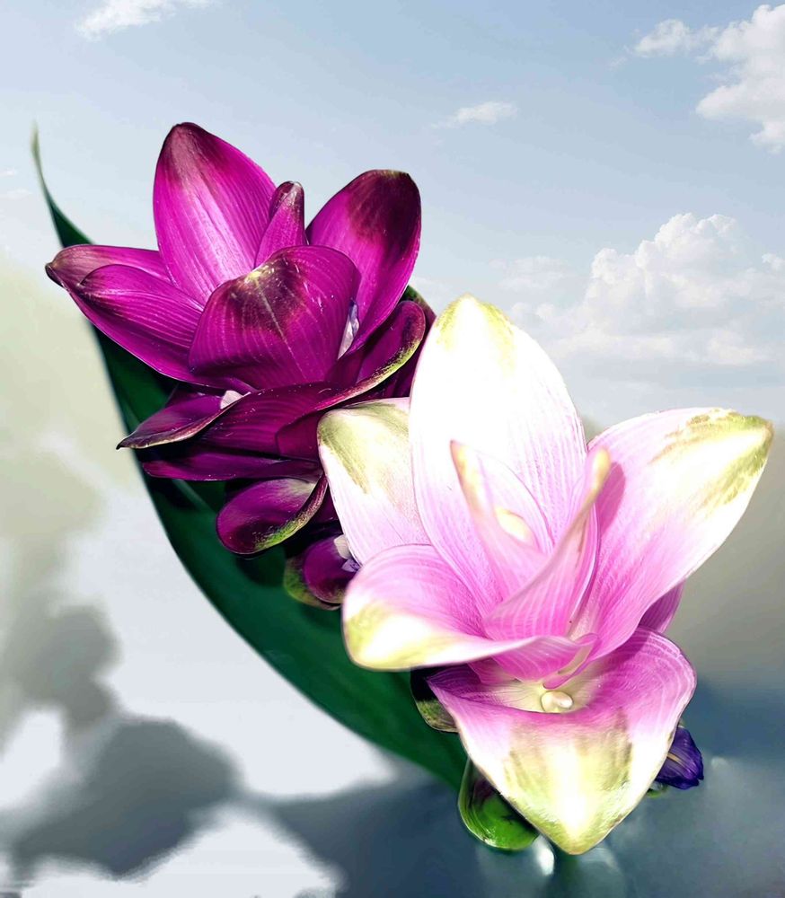 クルクマのお花が苞に隠れてお顔を出しているのが可愛いですヨ🤭