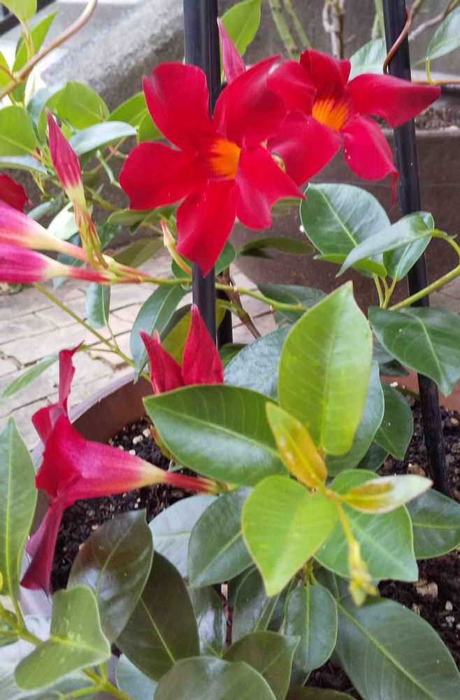 赤いマンデビラ❤️ 元気に咲いていてパワーをもらえますね💪🙌
