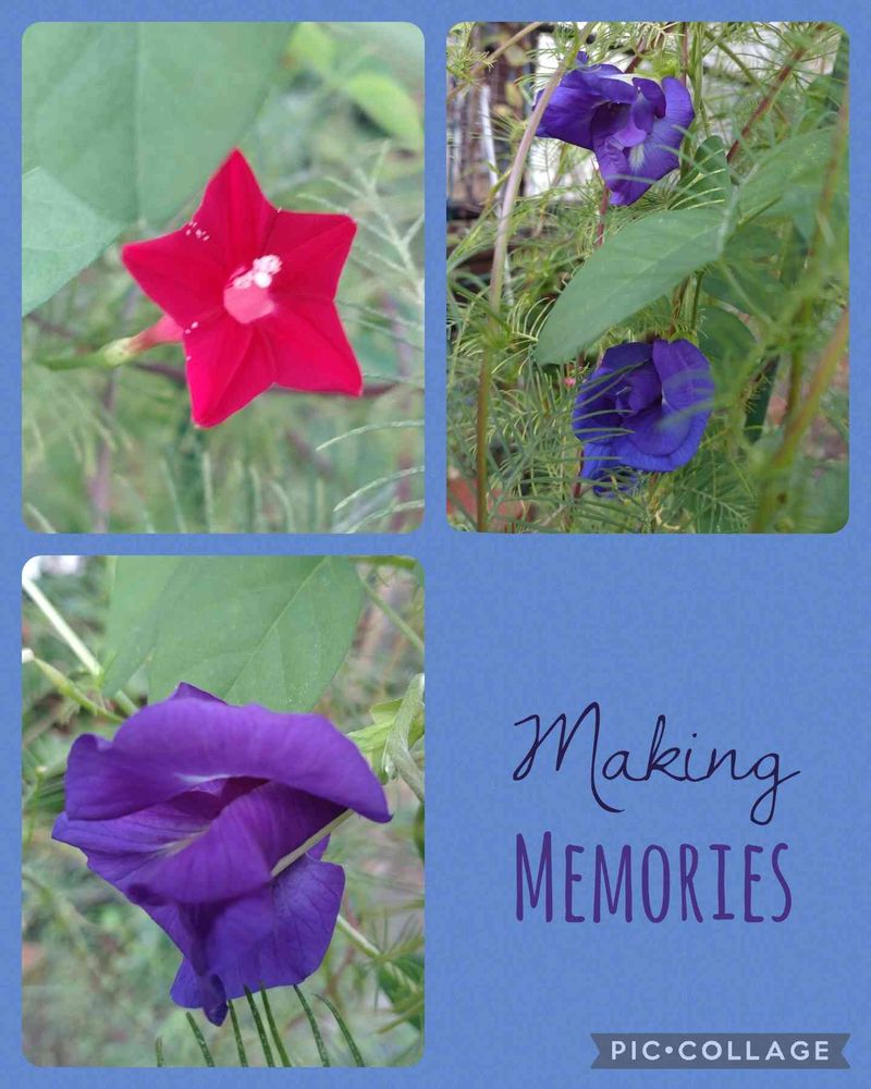 種まきしても、発芽しないバタフライピーの鉢に、ルコウソウを蒔きました。すると、バタフライピーが遅れて発芽して、花まで咲きました。