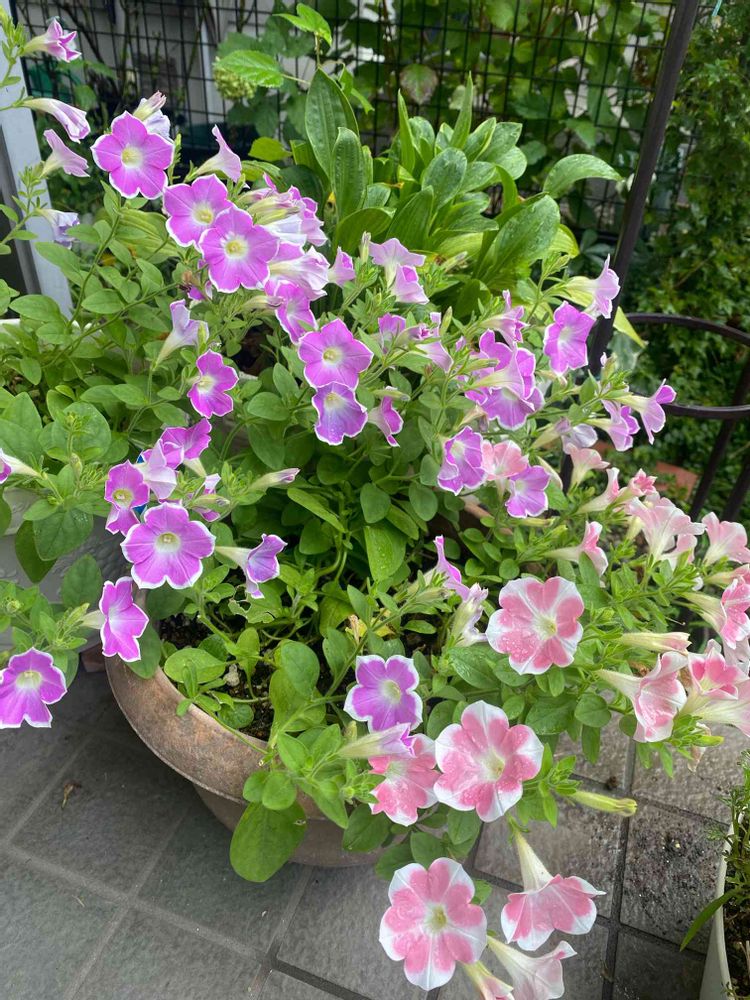 切り戻しして挿し芽したらポンポンに咲いたサフィニアさん🩷
