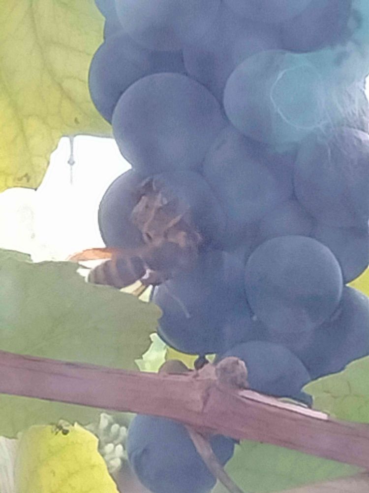 ブドウ目当てに沢山のスズメ蜂が来てます。