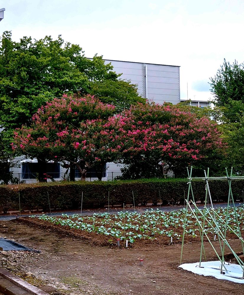 遠目からでもひときわ目立つサルスベリ👏👏👏 ちなみに手前の畑は立入禁止区域🈲です😎(農業試験場内にて)