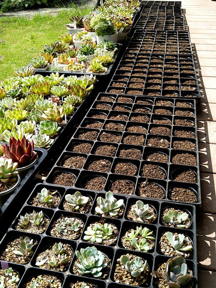 それだけじゃ飽き足らず量販店のお買い得徒長多肉を買ってきてはセッセと葉挿ししちゃうので…置き場問題に直面しております😆