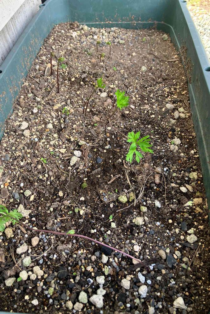 家の北側の軒下で夏越しさせてたアネモネの様子を見に行ったら…もう葉っぱが出てきていた!