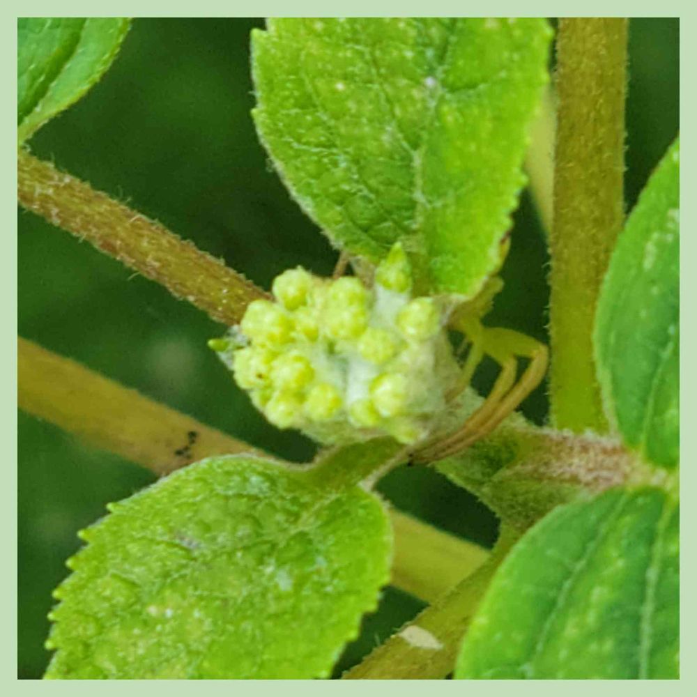 小さい花芽どアップだから蜘蛛も小さいはずだけど、バケモノに見えるでしょ😨