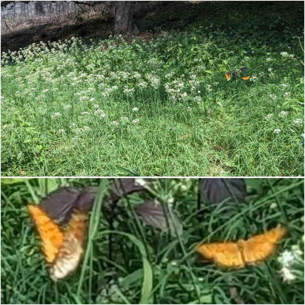斜面の土手近くを歩いていると ツマグロヒョウモンチョウらしき蝶が2頭…
