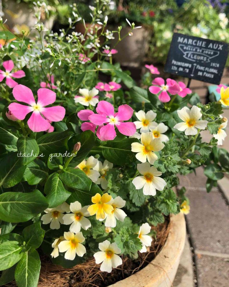 ニチニチソウ、ジャメスブリテニア、ユーフォルビアの寄せ植え💕