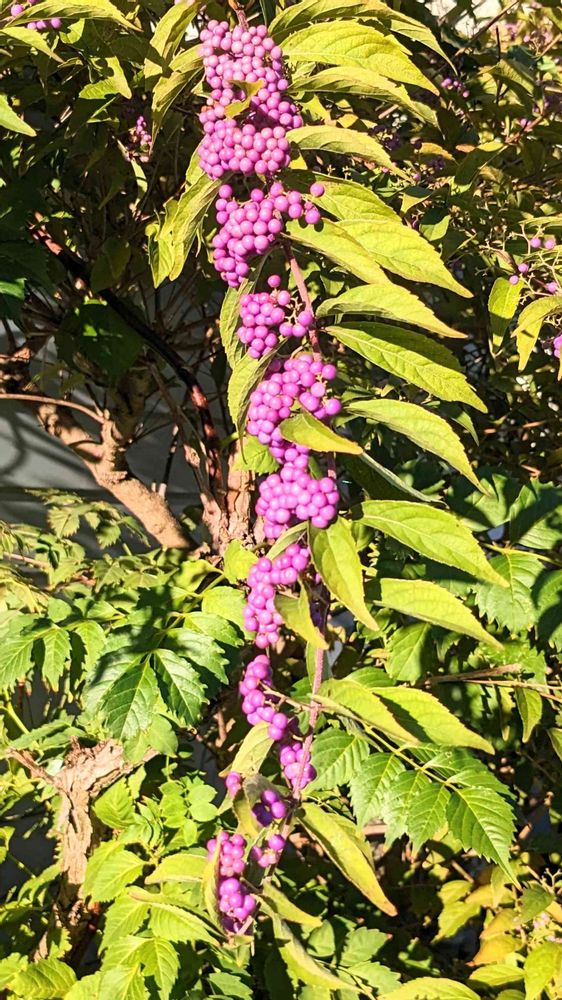 たわわな紫式部の実❗朝日に当たって色味が変わってますが、中々綺麗なパープル💟でした~🤗