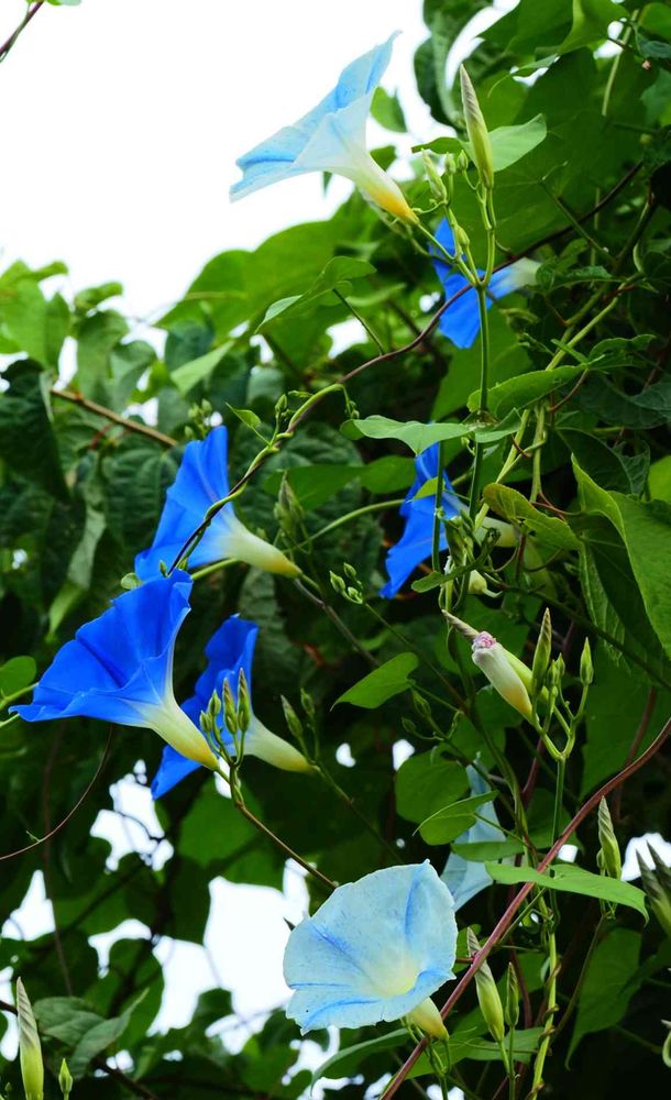 薄いブルーの朝顔も咲き始めました。綺麗です。
