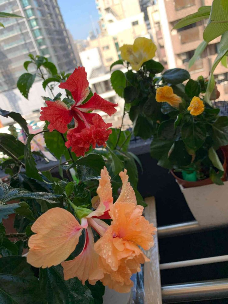 おはようございます。本日はハイビスカスデーとなりました🙆♀️orientalmoonさんは未だ寝ぼけ眼で小さいですが、数時間で大きくなります。レッドフラミンゴさんとイエローフラミンゴさんの2色同時咲きははじめての快挙です🙆♀️本日も皆様も良い一日をお過ごしください💓🙏🍀🥰