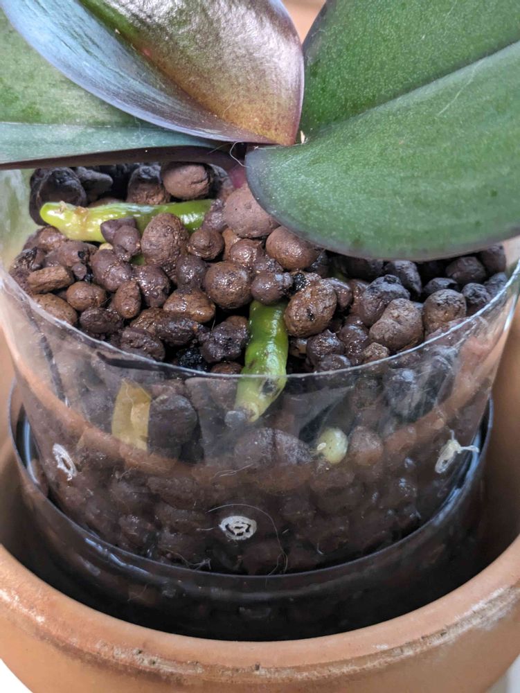 生育イマイチな胡蝶蘭マウントリップをユーチューブで見たハイドロボールを使うペットボトル水栽培にしてみました😉