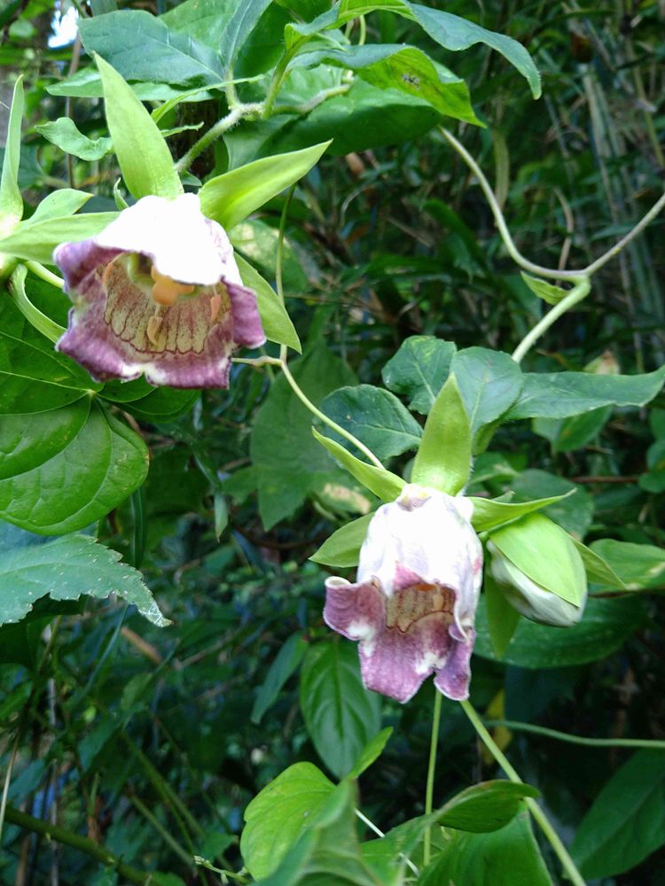 山裾の林に中に、うっすらとピンクがかったものが見えたので、草むらの蛇に気を付けながら近づいてみたら、ツルニンジンのお花でした🥀