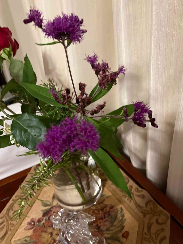 有難うございます。ベルノニアの写真を見ると、それよりもお花が小さい塊の気がしますが、葉の形や花の形はおはじなので、多分これだと思います。