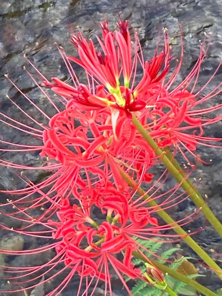 ヒガンバナが小川(用水路🙄)沿いの散歩道に咲き始めました