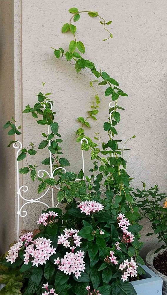 寄せ植えの中のゴールデンハニーサックルがツルを伸ばし続けています🌿🌿🌿