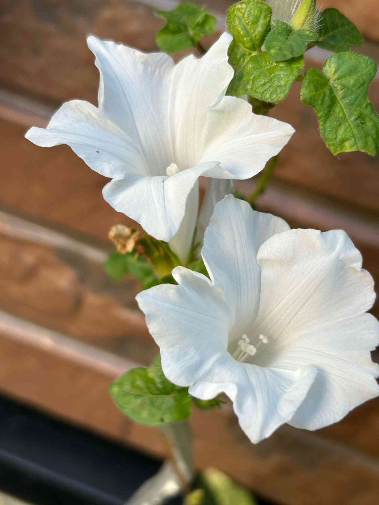 アサガオ かざぐるまシリーズ ゆき姫がやっぱり元気になって咲き始めました🤍🤍