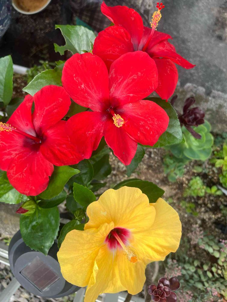 一つの鉢から二色が一緒🌺に咲き誇ってくれました💕
