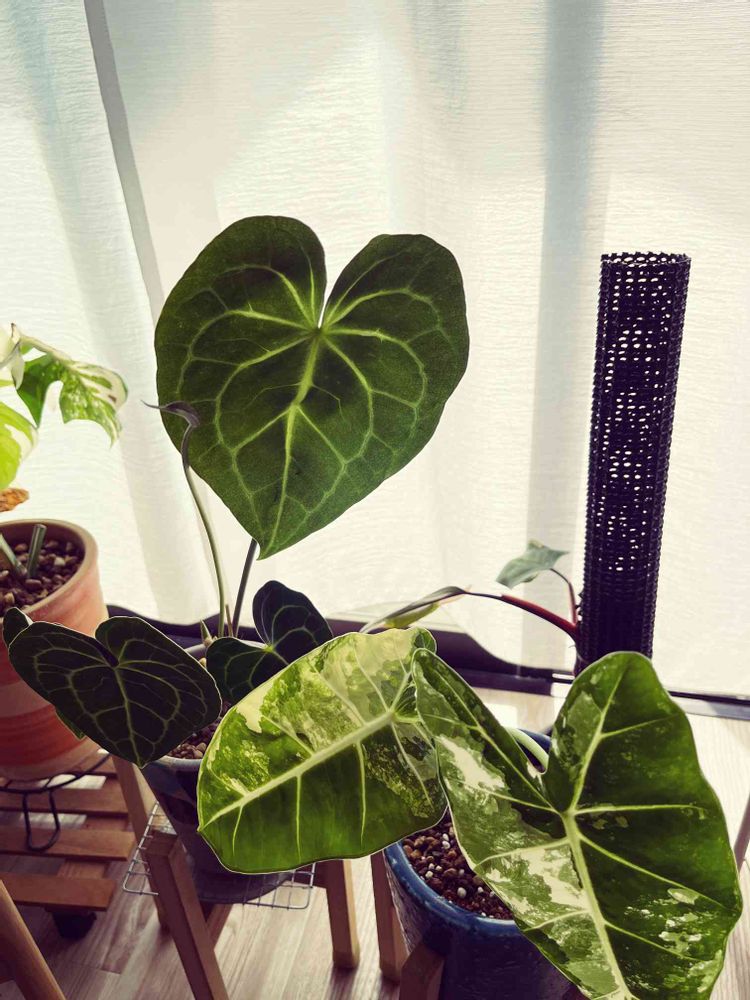 窓辺,アンスリウム クラリネルビウム,アロカシア・グリーンベルベット斑入りの投稿画像