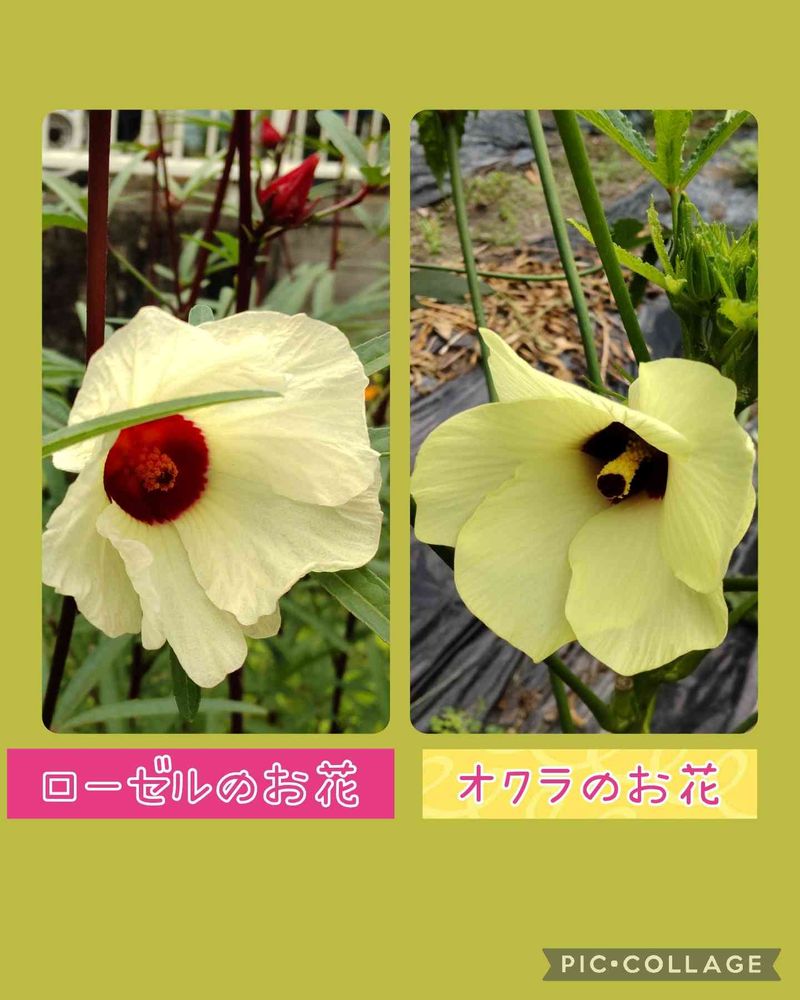 オクラのお花は日中もまだ咲いていますが、ローゼルのお花は午前中からもう萎み始めていますね😊