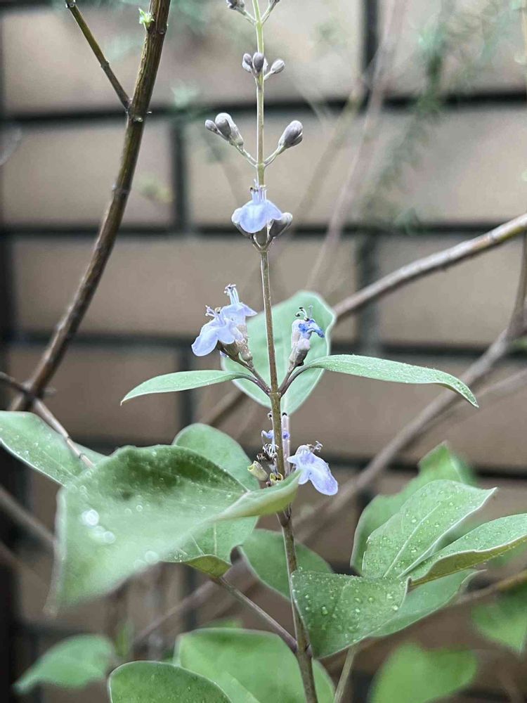 西洋ニンジンボクのお花が。葉が美味しいのかあちこち穴だらけでしたが、この枝にだけ咲いてくれました。