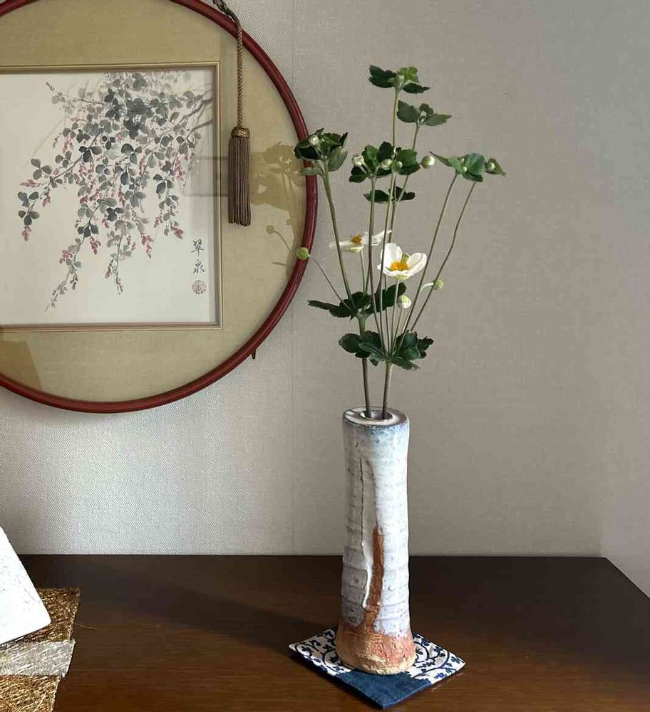 庭に咲いた秋明菊を花瓶に挿してみました。