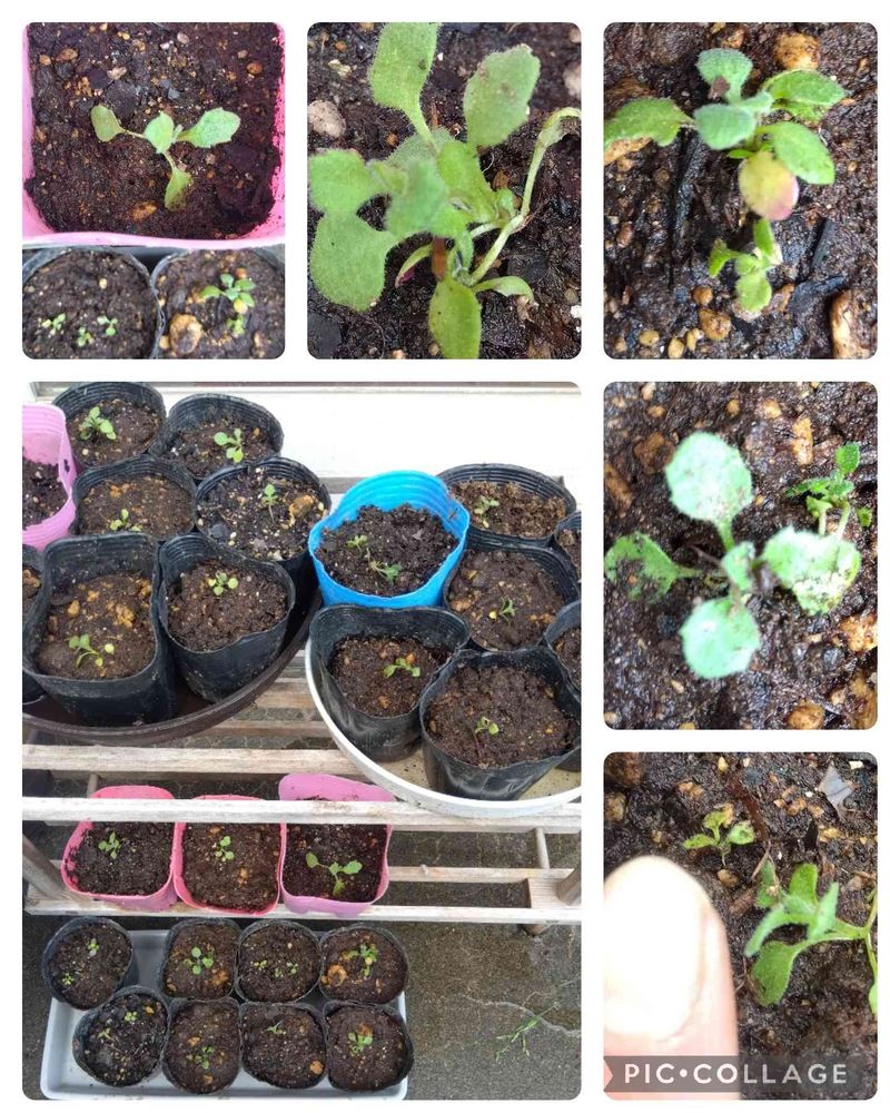 夏に種まきしたオーブリエチアはだいたい芽1本を1ポットに植え替えました。