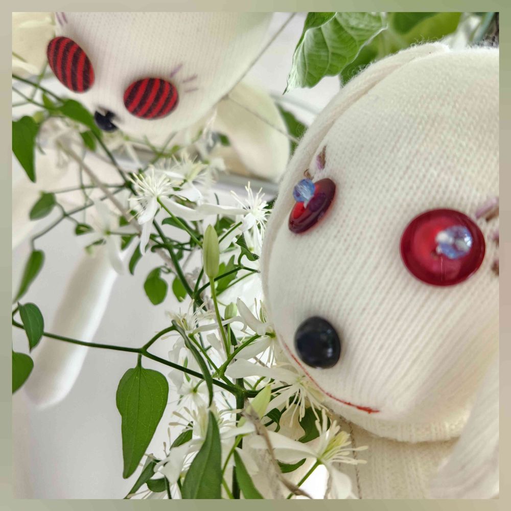 知人に白いハイソックス🧦だけ渡し、お任せで作ってもらったソクラビ🐰です。(◠‿・)