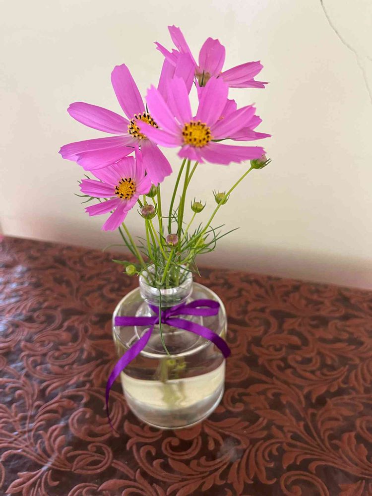廊下に 実家のコスモスの花を