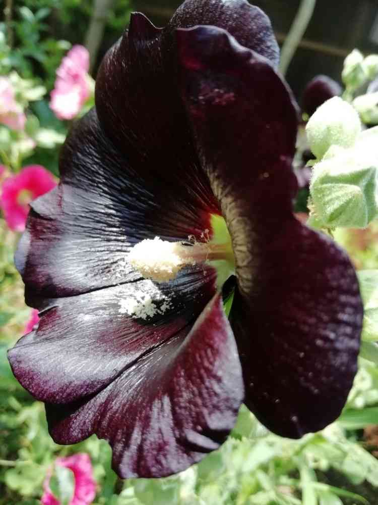 お花の下にラベルが落ちていて黒いタチアオイの本名はながーい名前でした。「アルセア シングル アラビアンナイト」でした。