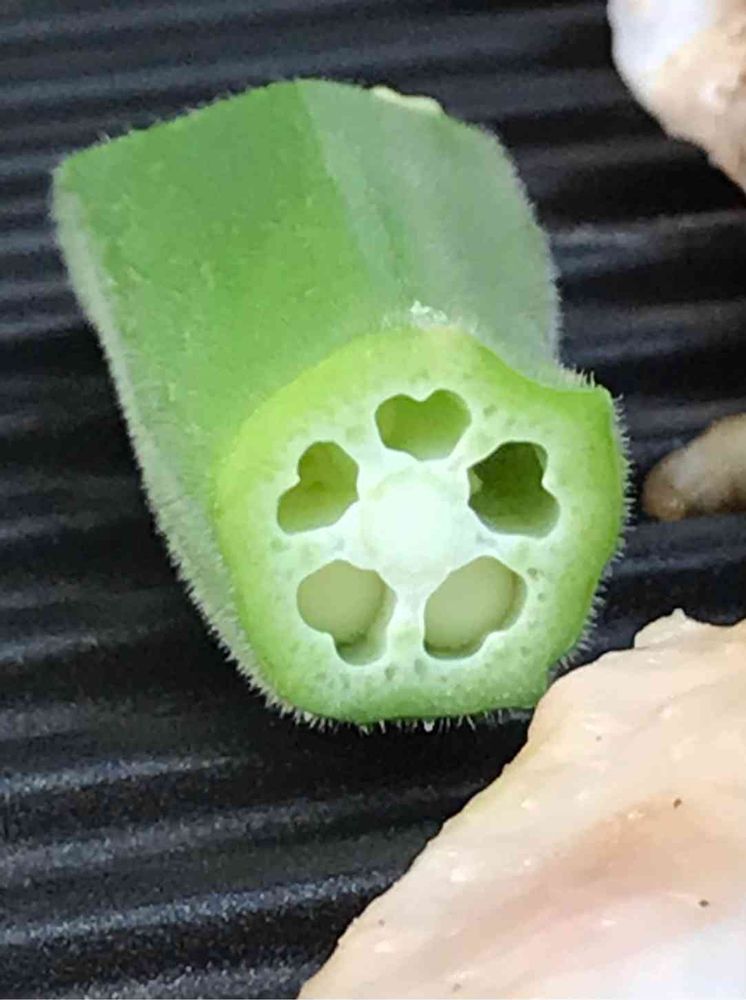 焼肉中に、ハート型の島オクラを発見‼️❤️